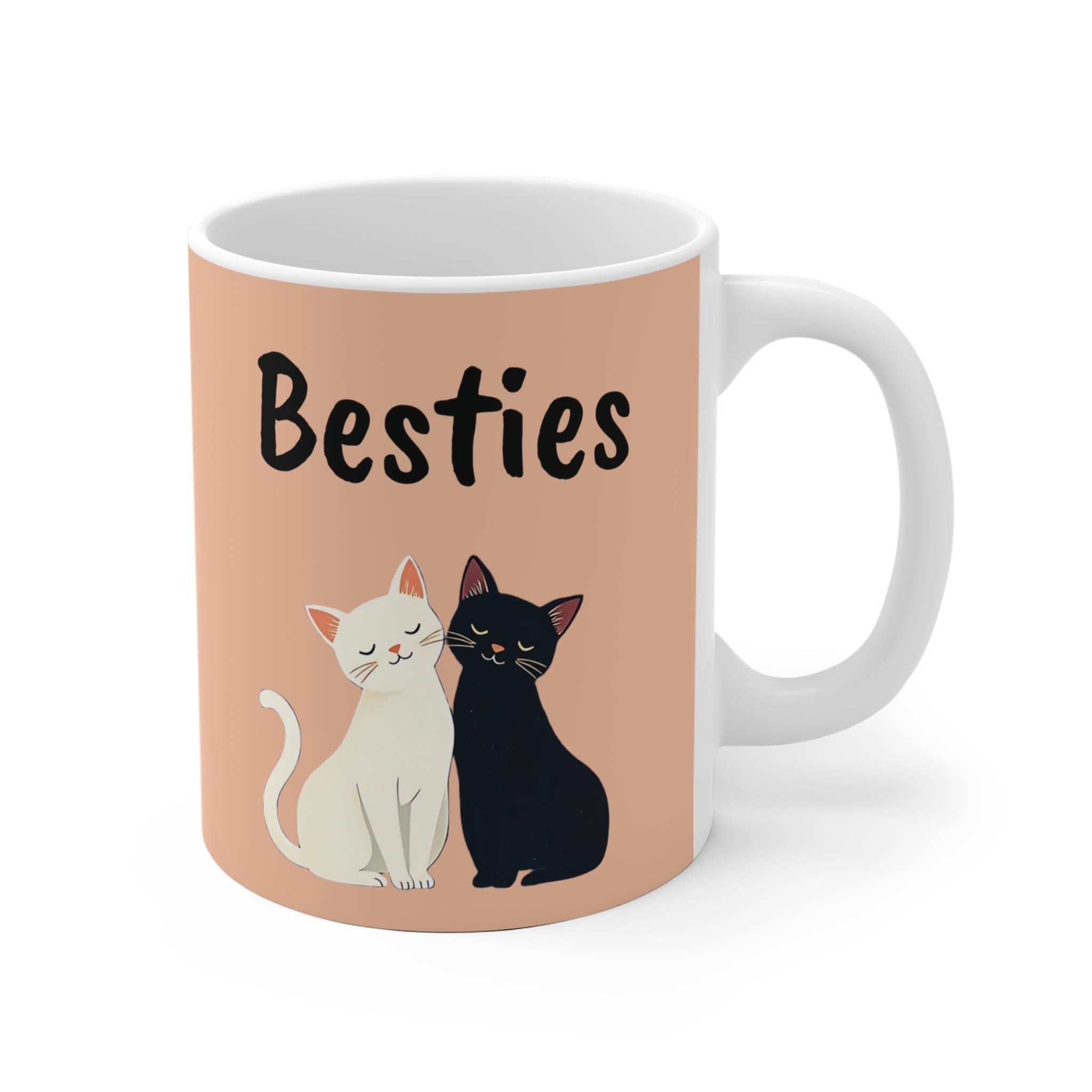 Celebrate friendship with this adorable black and white “Besties” mug, featuring two cute cats side by side! Whether you’re sipping coffee, tea, or hot cocoa, this high-quality ceramic mug is the perfect gift for best friends and cat lovers alike! Available in beige, pink and blue, so you can mix and match! This design is available with customization options as well (check our other listings!)